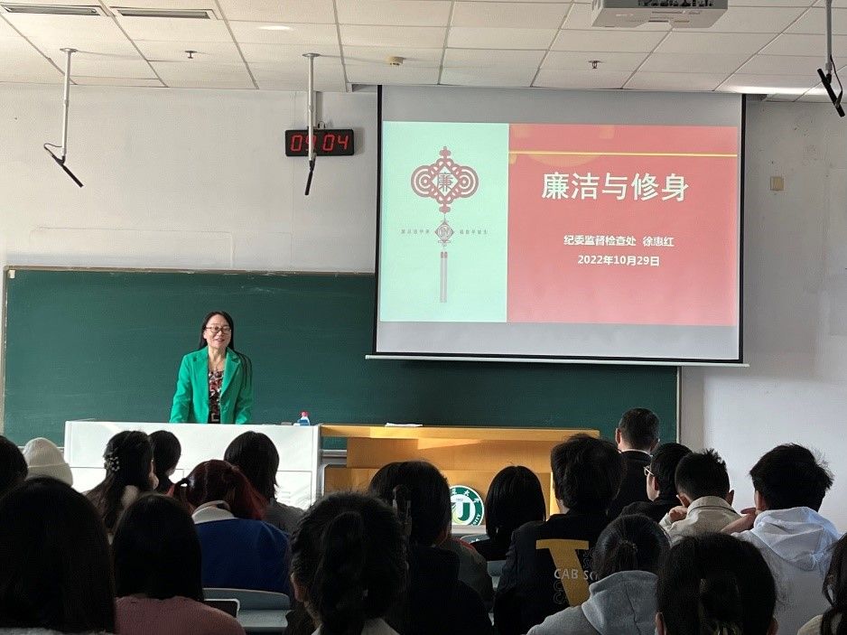 10月29日上午,3522vip浦京集团官网邀请校纪委监督检查处处长徐惠红,在三江楼附楼201开展《廉洁与修身》专题讲座,学院全体学生党员及入党积极分子参加,会议由院党委书记张世兵主持。