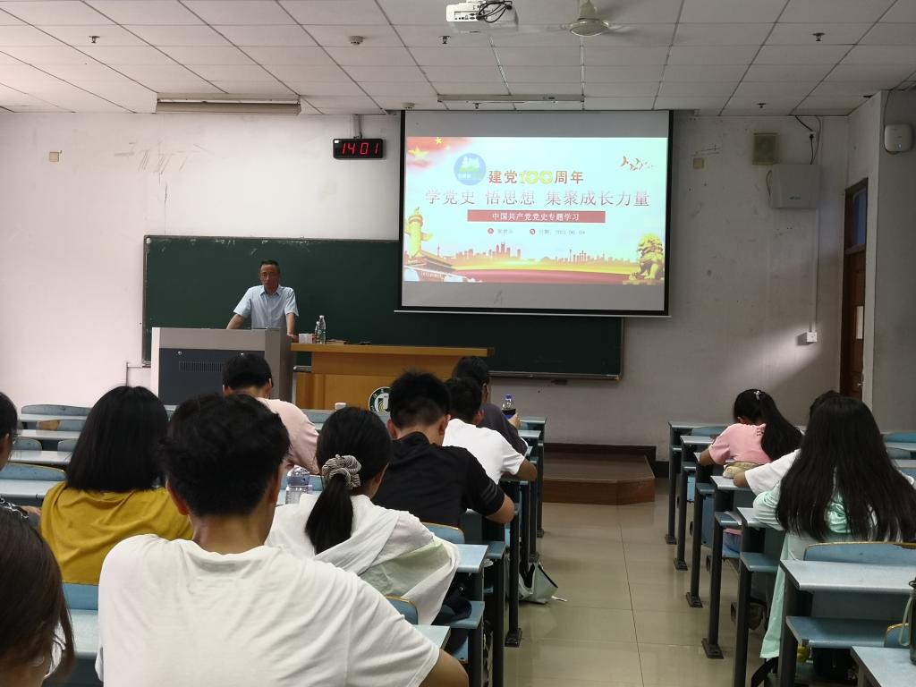 6月9日,数学科学学院在三江楼附楼202教室举办《学党史 悟思想 集聚成长力量》专题讲座。本次讲座由数学科学学院党委书记张世兵主讲,2020级递交入党申请书同学参加。