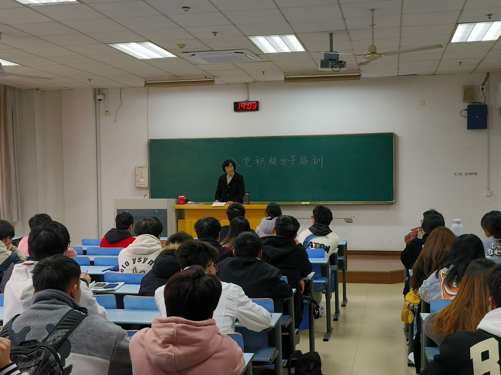 尹美英以“加强党性修养,践行初心使命”为题,从高校人才培养目标出发,引出党性的重要性,并从党性修养的涵义和提高党性修养方法途径等方面做具体讲述。最后,她对入党积极分子提出四点希望,一要加强政治理论素养,确定人生目标;二要加强思想道德修养,提升人生境界;三要加强科学文化素养,实现人生价值;四要加强纪律修养,增强纪律观念。