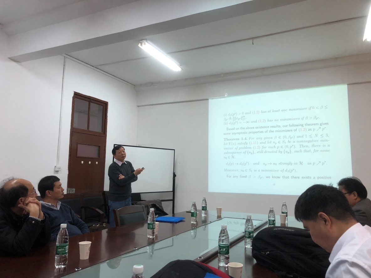 The recipient of the National Outstanding Youth Fund, leader of the National “People Plan” and leader of Science and Technology Innovation in the Ministry of Science and Technology, Prof. Zhang Zhitao gave an academic report entitled “Henon-Lane-Emden conjecture and related Schrodinger systems”. He talked about the Henon-Lane-Emden guessing problem and the latest progress.