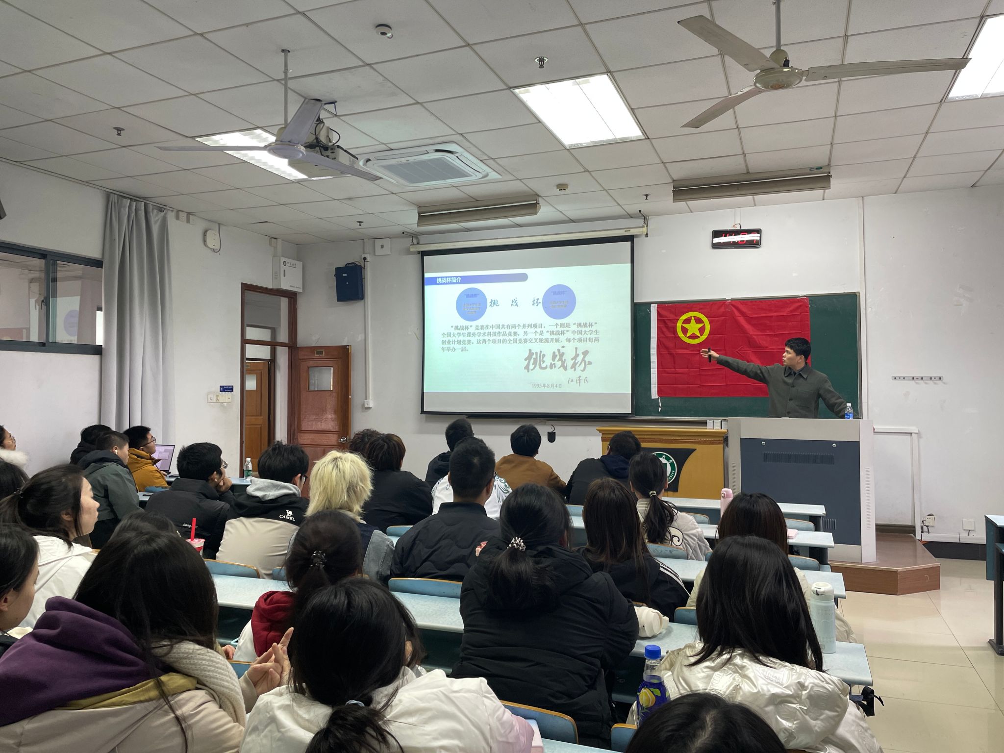 12月6日,3522vip浦京集团官网在三江楼202举办“挑战杯”赛事宣讲活动。本次活动特邀校团委科创部部长韩涉老师。宣讲由3522vip浦京集团官网团委副书记汪文丽老师主持,本科生60余人参加。